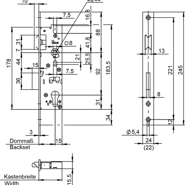 | Wskazówka dla dornmas 20 mm | Nietestowany według normy EN 12209, wysuw zasuwki 13 mm |